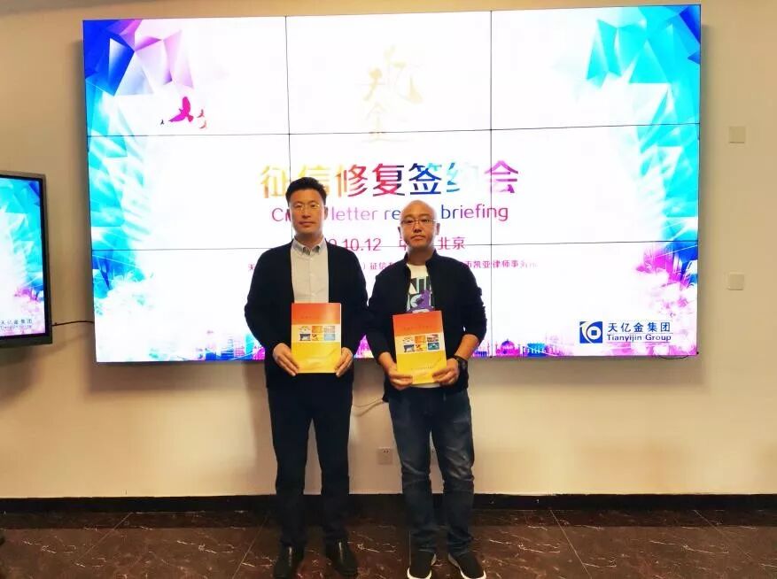 2019年10月12日,天亿金集团"征信修复说明会"成功召开。天亿金集团董事长孙浩天(孙玉州)出席了此次会议。凯亚征信联合创始人、《征信大讲堂》讲师每文,凯亚征信联合创始人、CA咨询顾问班增欣,凯亚征信联合发起人、凯亚律师事务所法务助理李飞,凯亚律师事务所主任董来超作为主讲嘉宾参加了此次会议。
